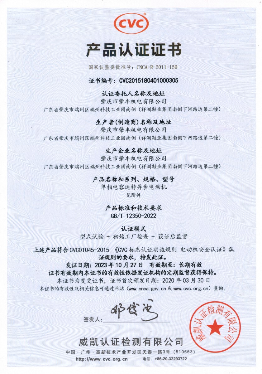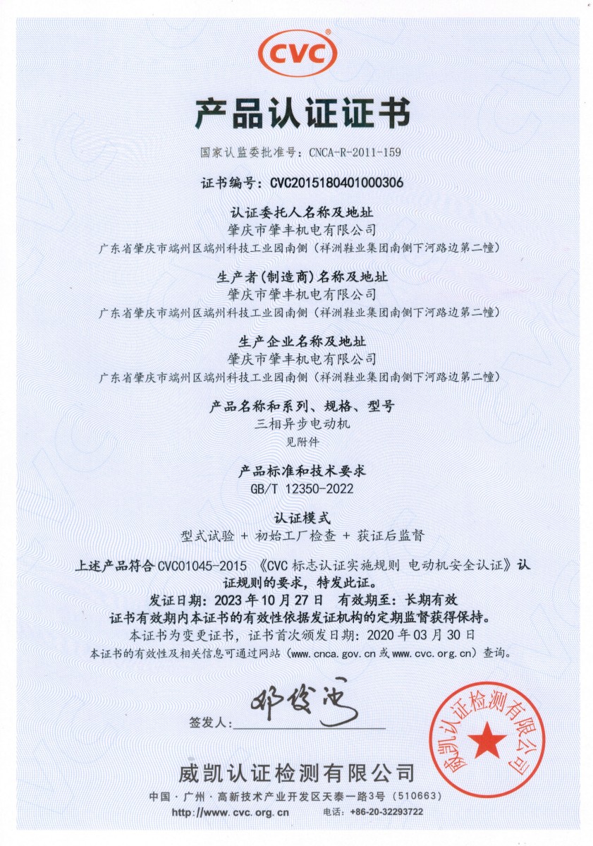 CVC产品认证证书-YS系...