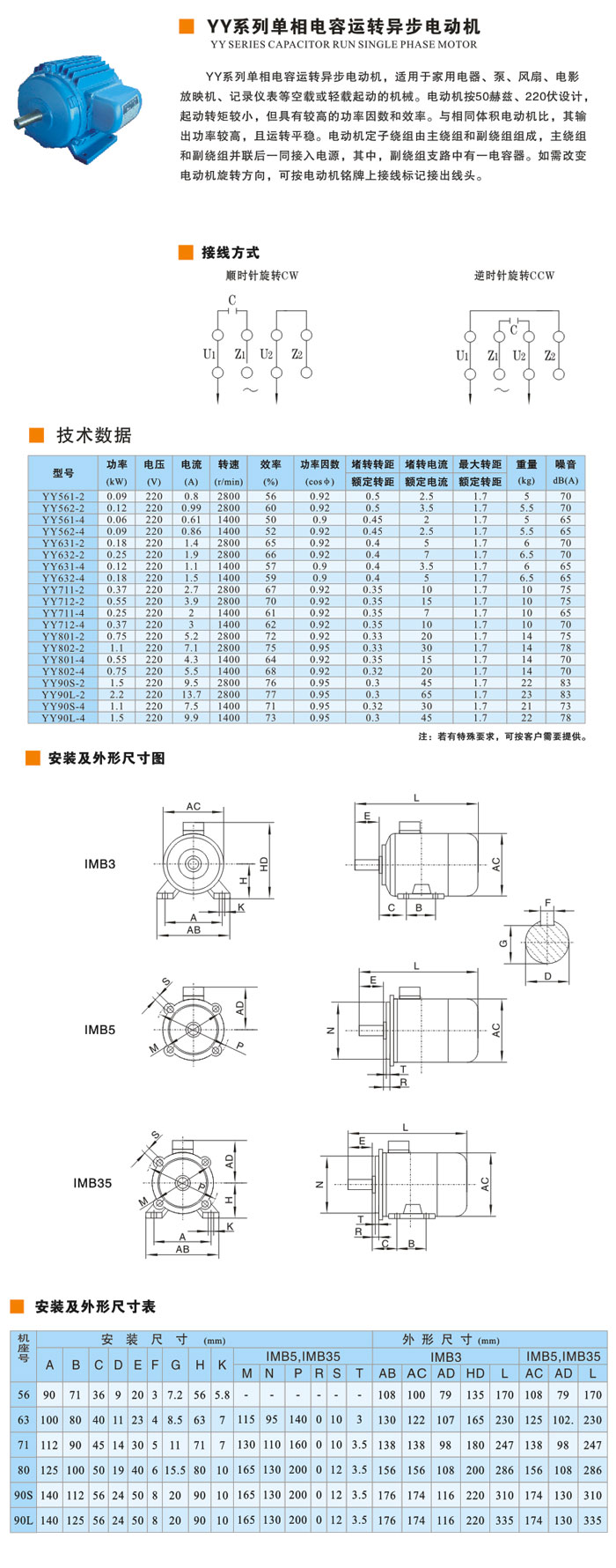 YY系列单相电容运转异步电动机